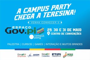 A transformação digital do Piauí estará em evidência na Campus Party Weekend Piauí, um dos maiores eventos de tecnologia, inovação, ciência e cultura digital do mundo, que acontece dos dias 29 a 31 de maio no Centro de Convenções de Teresina.