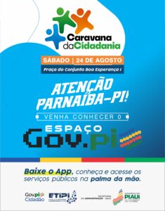 A plataforma de governo digital do Piauí, bem como todos os serviços voltados ao público estarão em evidência, neste sábado (24), na Caravana da Cidadania, realizada na cidade de Parnaíba. A ação terá início às 9h, na praça do Conjunto Boa Esperança I e vai disponibilizar para a população o Espaço Gov.pi Cidadão.